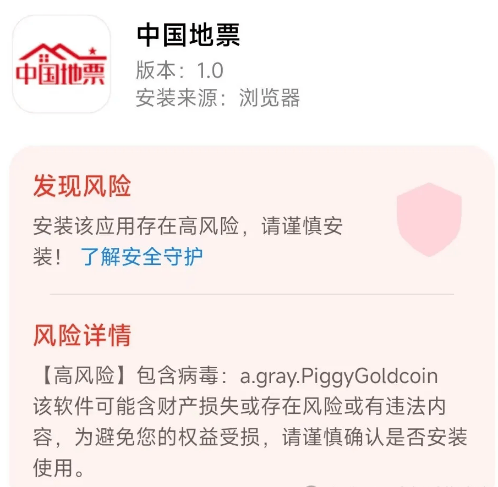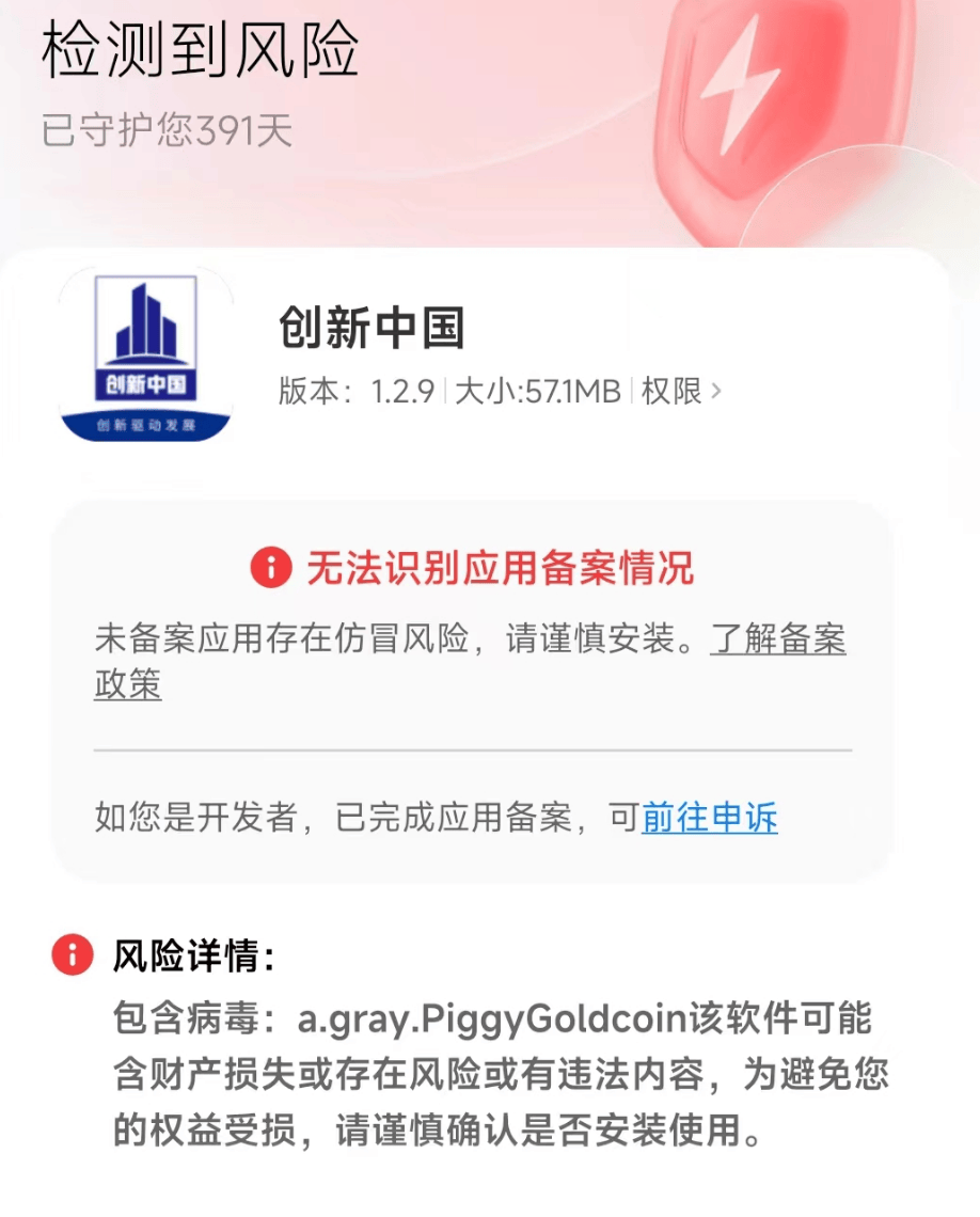 :民族资产解冻类诈骗,下载提示,该软件可能含财产损失或存在风险或有违法内容