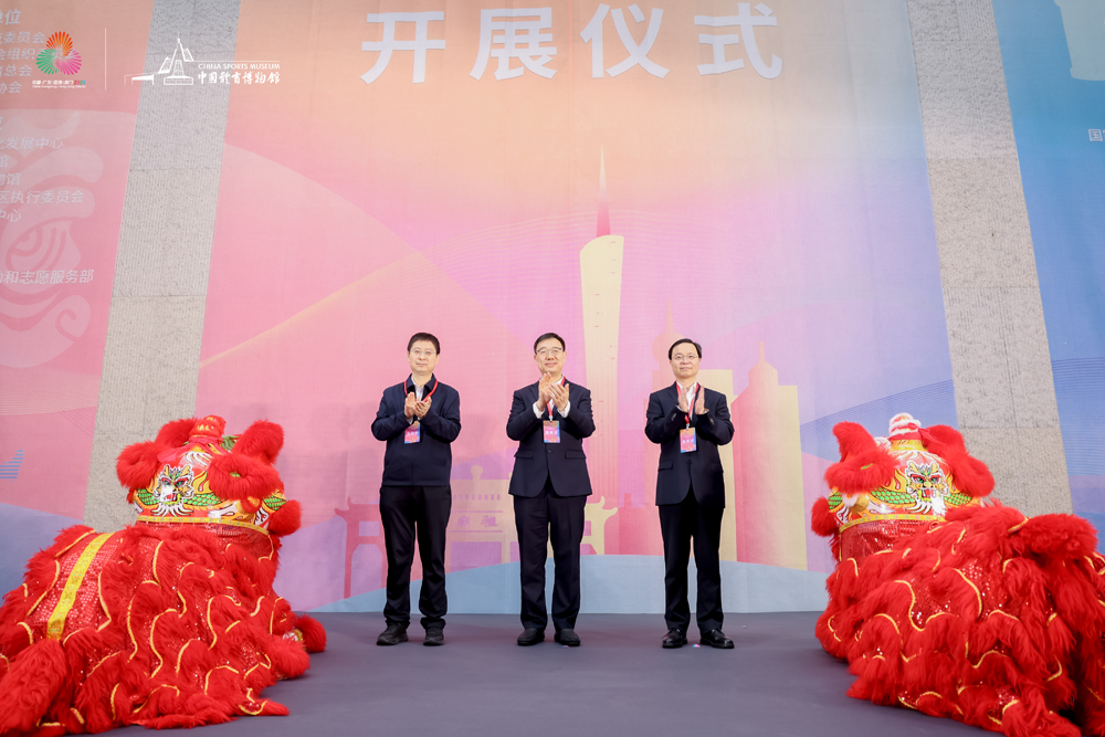 国家体育总局副局长李静,广东省人民政府副省长李运,中国美术家协会分党组书记屈健,洛杉矶1984年奥运会射击冠军、中国奥运首金获得者许海峰,伦敦2012年奥运会男子体操团体冠军郭伟阳,伦敦2012年奥运会男子举重69公斤级冠军林清峰等嘉宾出席开展仪式。开展仪式由国家体育总局宣传司司长高超主持。