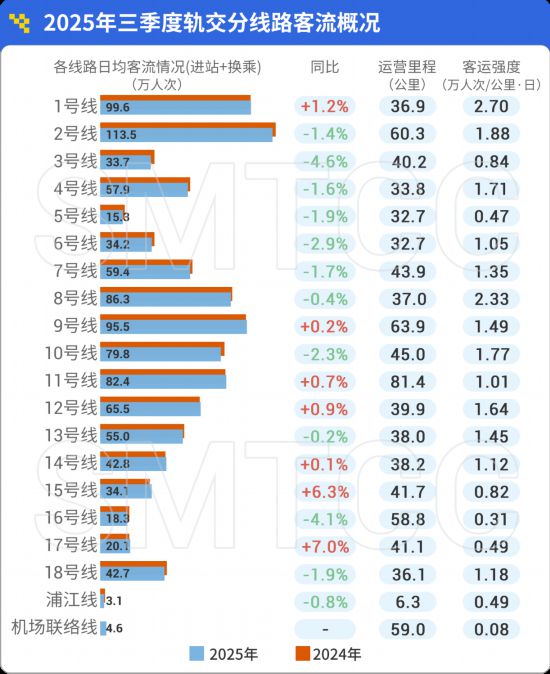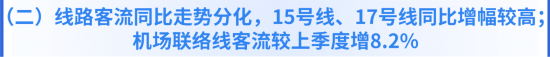 三季度2号线号线日均客流依然位列前三,37%的线号线号线客流同比涨幅较高,分别为6.3%、7.0%;机场联络线%。