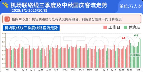 市域线%,涨幅收窄。其中工作日日均客流4.71万人次(环比增9.0%),休息日日均客流4.38万人次(环比增5.1%)。而客流峰值在10月8日被再次刷新,达6.8万人次。