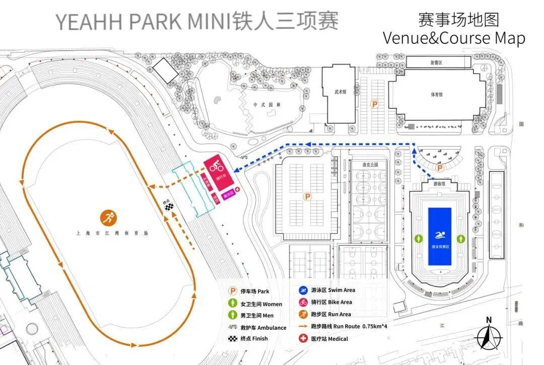 3. 跑步赛段在田径场进行,单圈距离750M,沿逆时针方向跑4圈,跑步总距离为3KM。
