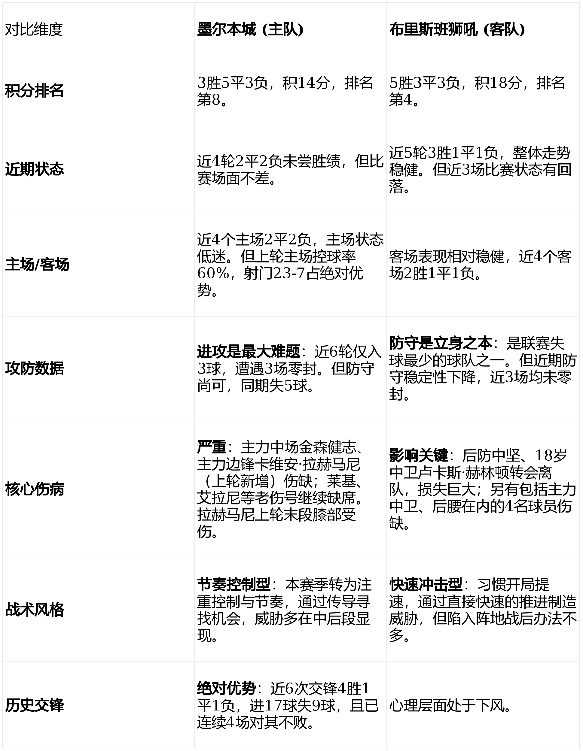 综合来看,这是一场“控制与效率”对抗“冲击与防守”的比赛,且双方都有关键球员缺阵。