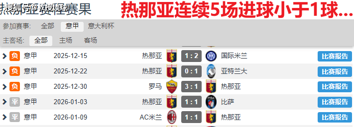 对于一支跨赛季主场胜率不足10%的球队,且刚经历双重打击,目前热那亚方向显得过于便宜。