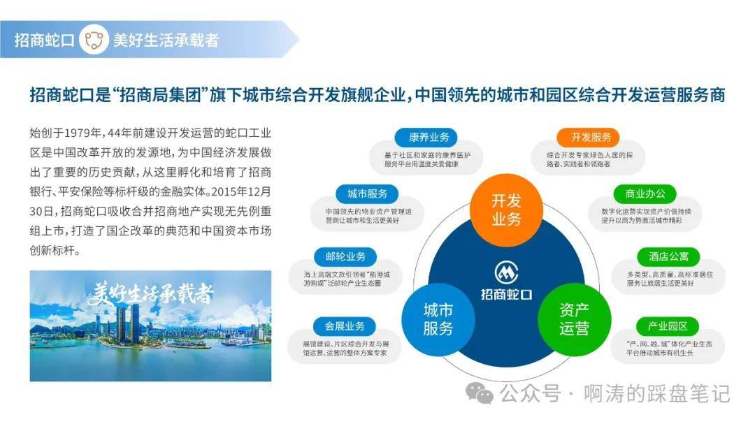 招商蛇口:世界500强,百年央企——招商局集团旗下房地产旗舰企业,中央直接管理的国有骨干企业,截止2022年,资产总额和净利润率蝉联央企第一。2023年中国房地产百强企业第6位