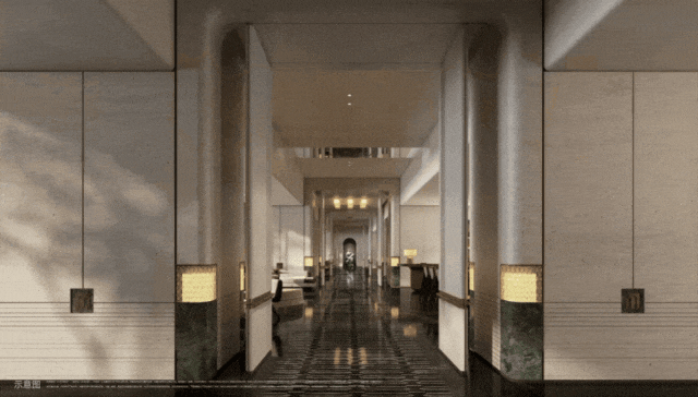 公区又有湄南河四季酒店、安达仕酒店等度假酒店的影子,通过架空层与室外景观的立体融合,大气奢华的同时,又透出一种度假的松弛感。