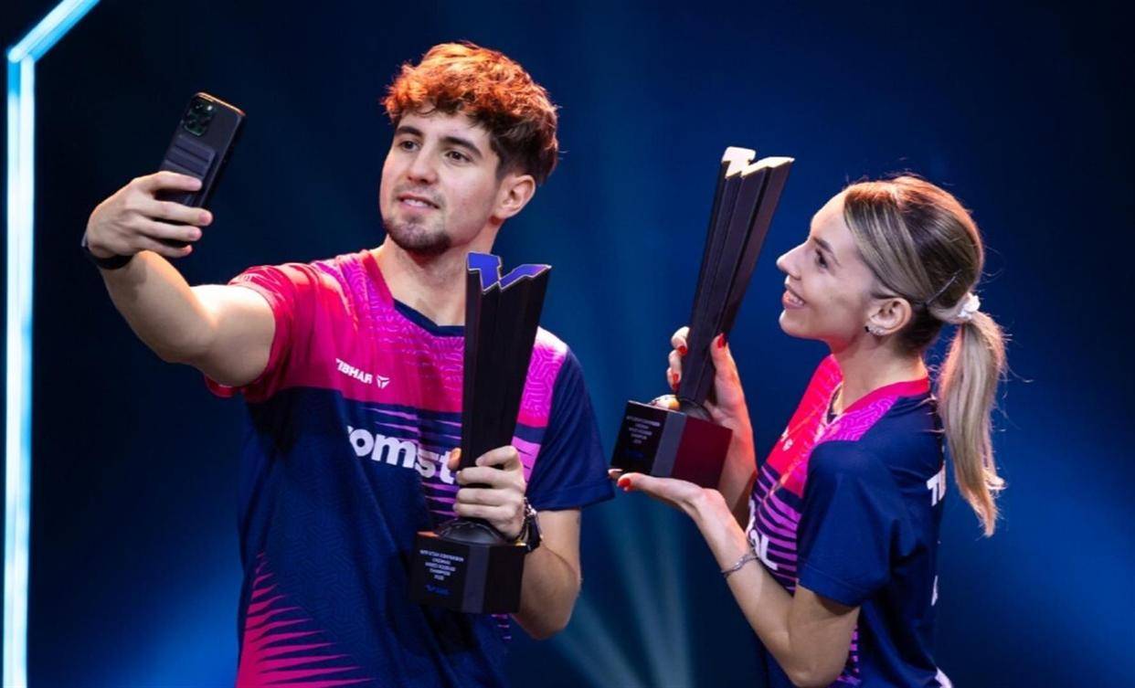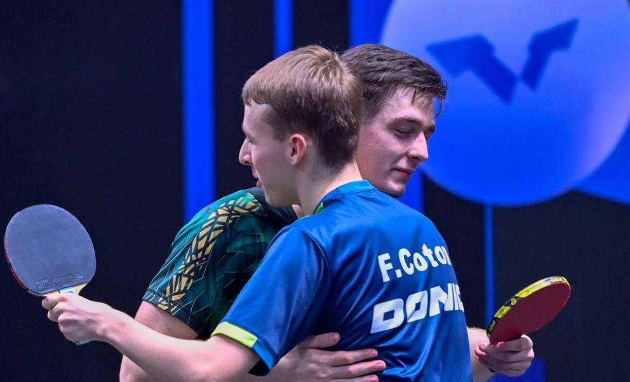 吴晙诚在混双半决赛中为了救一个球,脚部严重受伤,不得不退出所有后续比赛。 这意味着,男双决赛还没打,冠军就已经确定了。 科顿和泊雷特连球拍都没挥,就直接捧起了冠军奖杯。 这是他们首度搭档拿到WTT赛事的男双桂冠,但夺冠的方式,恐怕连他们自己都觉得有些梦幻。